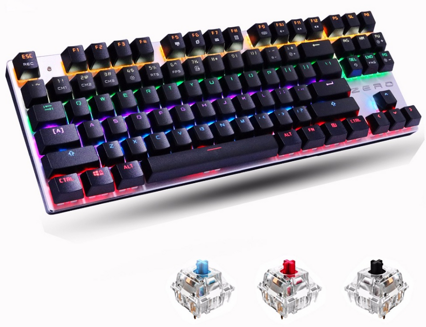 Надоело в темноте мазать по клавишам, которые еще и залипают время от времени? Пора переходить на механику с RGB подсветкой! У продавца есть доставка из России. Можно выбрать свичи черного, красного и синего цвета. На кейкапах есть русские буквы. У продавца почти 5000 заказов, а общий рейтинг клавиатуры 4.8, что является очень хорошей оценкой качества.