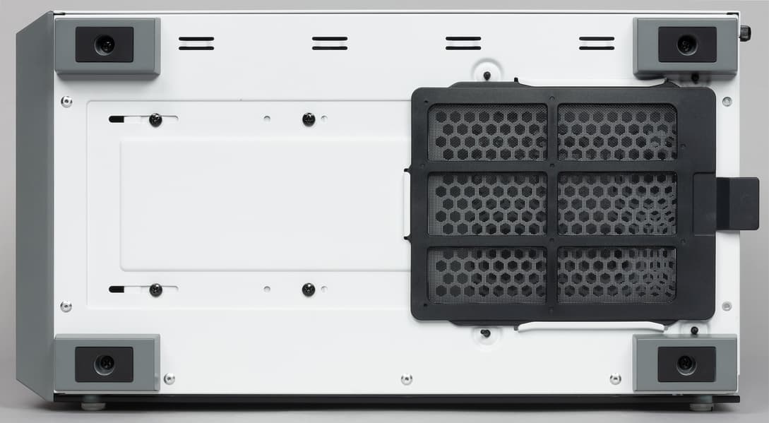 Фильтр для верхней стенки удобнее всего снимается и ставится на место благодаря магнитной окантовке, однако выполнен он из достаточно крупной пластиковой сетки, а потому большая часть мелких пылинок просочится сквозь него в корпус. С другой стороны, он отлично поможет от падения внутрь корпуса монет, ключей, каких-либо мелких предметов, да и от части пыли тоже спасет.