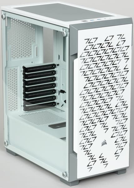 Corsair iCue 220T RGB Airflow Tempered Glass Mid-Tower Smart Case — это новая бюджетная модель с оформлением передней панели в виде решетки, которую формируют множество разнонаправленных V-образных элементов. Дизайн получился неплохой и довольно свежий.