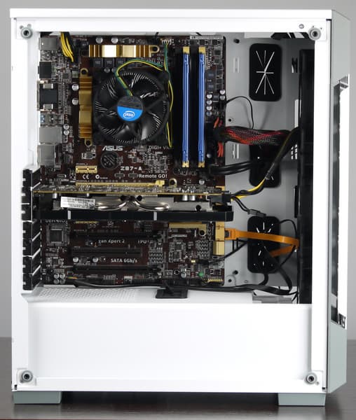Согласно данным производителя, в корпус можно установить процессорный кулер высотой до 160 мм. Расстояние от основания для системной платы до противоположной стенки составляет около 180 мм. Глубина отсека для прокладки проводов составляет около 15 мм у задней стенки. Для монтажа проводов предусмотрены петли для крепления стяжек или других аналогичных изделий.