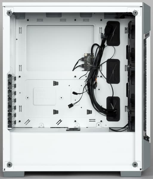 В корпусе предустановлены три вентилятора типоразмера 120 мм, все — спереди. Вентиляторы имеют по два разъема: стандартные трехконтактные разъемы с колодкой 1×3 с возможностью подключения к системной плате с управлением питающим напряжением и проприетарные четырехконтактные разъемы для управления подсветкой.
