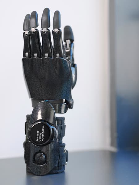 Всего было создано два вида протезов: тяговый, в котором Galaxy Watch будет передавать телеметрию об активности пациента в «облако», и роботизированный бионический. Устройство второго типа получило собственное управление через электро-миографический датчик, измеряющий усилие мышц, что позволяет регулировать сжатие руки и захват пальцев.
