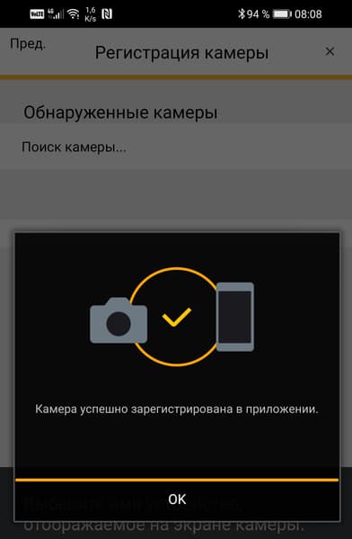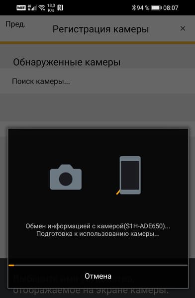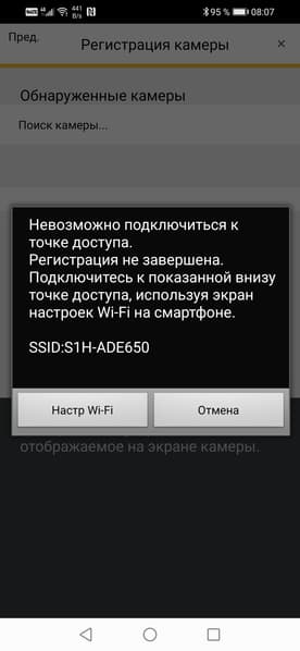 Неясно, в чем тут проблема. Возможно, версия Bluetooth на нашем смартфоне недостаточно продвинутая. Но не беда, есть и другой способ: можно принудительно активировать Wi-Fi точку камеры и вручную подключить к ней смартфон, после чего запущенное приложение самостоятельно зарегистрирует камеру.