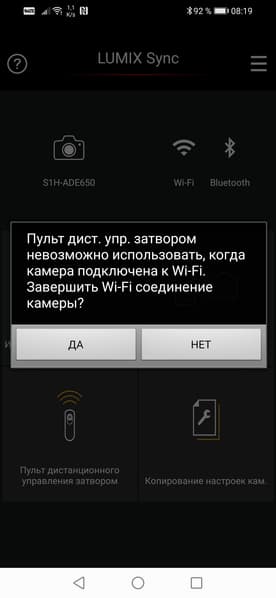 Если во время сеанса Wi-Fi связи нажать какую-либо кнопку камеры или тронуть кольца объектива (кроме зума), то управление по Wi-Fi блокируется на 10 секунд. Но это легко отключить, сменив в настройках приоритет смартфону.
