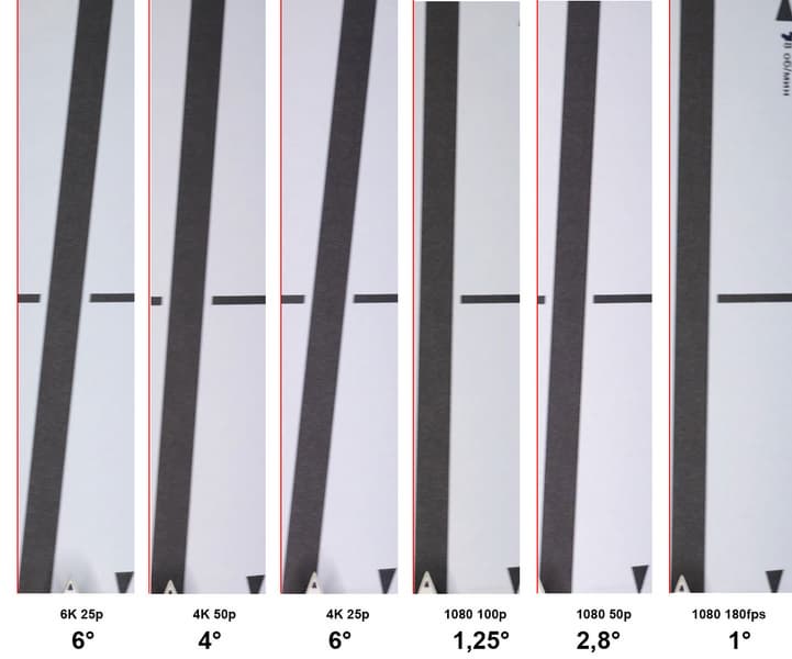 Полученный результат можно назвать достойным, особенно в сравнении с результатами, полученными в свое время при изучении камер других моделей и брендов. Например: Fujifilm X-T3 — 4,1°, Canon EOS 5D Mark IV — 8,8°, Leica SL (Typ 601) — 7,5°, Sony FDR-AX700 — 4.5° и т. д. (приведены значения, полученные при съемке в режиме 4K).