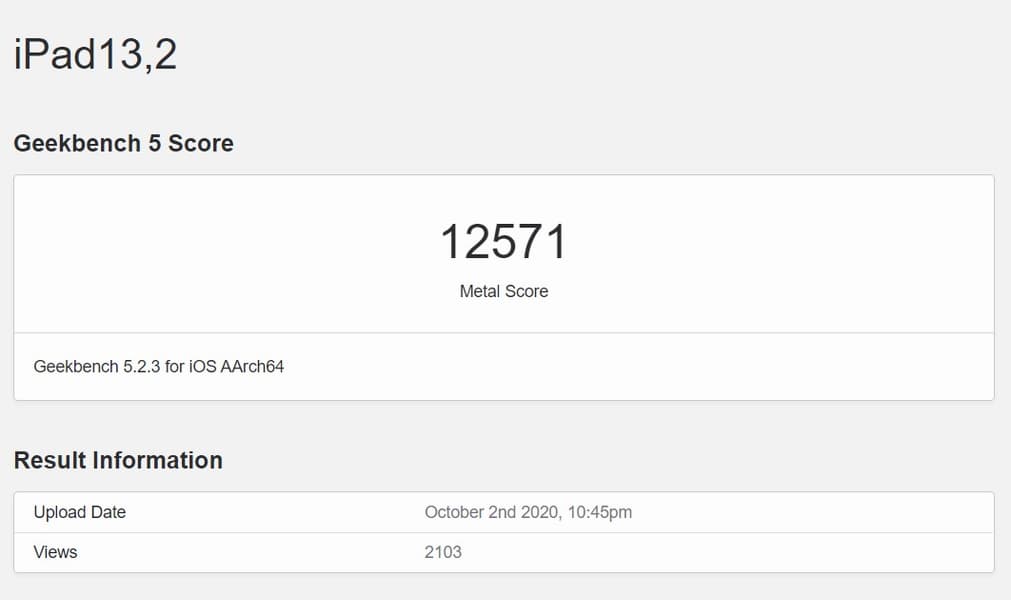Теперь пришёл черёд графической производительности. В тесте Geekbench 5 Metal новинка Apple набрала 12 571 балл, и это почти вдвое больше, чем показывает Apple A13 Bionic, и даже на 8% больше, чем результат A12Z Bionic.