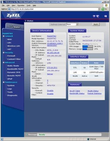 Рассмотренный в данной статье интернет-центр ZyXEL P660HTW2 полностью соответствует всем современным требованиям для домашних высокоинтегрированных устройств для доступа в Интернет по ADSL, интерактивного телевидения и интернет-телефонии. Классическое сочетание из ADSL2+, четырех портов Fast Ethernet и 802.11g Wi-Fi удачно дополняется технологией Absolute ADSL, обеспечивающей в том числе работу на линиях, оборудованных охранной сигнализацией, и простой настройкой с применением программы NetFriend. Дополнительно отметим встроенные Firewall и систему управления полосой пропускания, которые повышают безопасность и удобство использования интернет-центра.