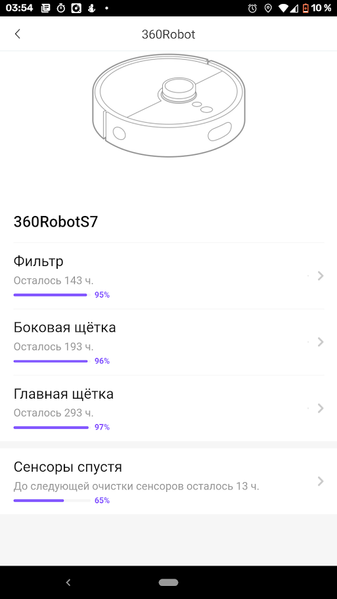 Приведенные в руководстве интервалы обслуживания и ресурс расходников являются приблизительными и зависят, разумеется, от интенсивности использования пылесоса. Мобильное приложение позволяет более точно определять срок обслуживания или замены.