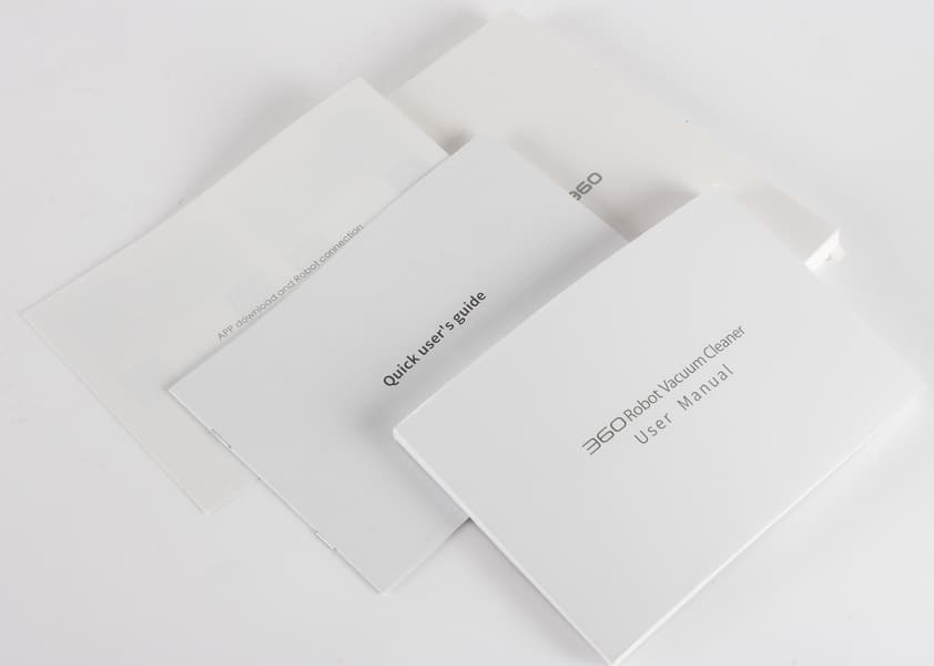 Комплект документации к роботу-пылесосу упакован в картонный конверт и включает в себя инструкцию по эксплуатации, краткое руководство по быстрому старту и инструкцию по установке мобильного приложения.