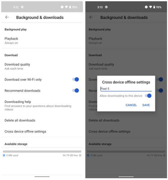Пока функция не работает в полной мере. Однако у некоторых пользователей YouTube Premium в разделе «Фоновый и офлайн-режим» уже появилась настройка для скачивания на нескольких устройствах. При нажатии на неё появляется всплывающее окно, где пользователь может указать устройства для синхронизации. Однако пока реальная синхронизация не выполняется.