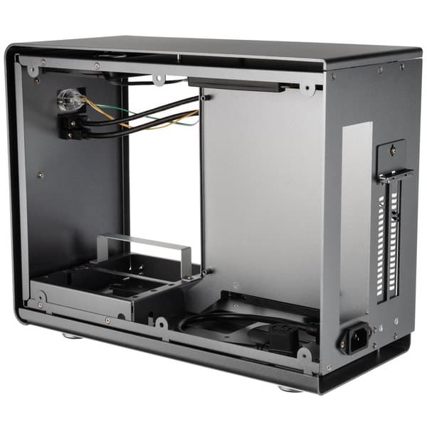 В корпусе помещается блок питания стандарта SFX или SFX-L, до двух накопителей типоразмера 2,5 дюйма и видеокарта длиной до 330 мм и шириной до 2,9 слота. Максимально допустимая высота процессорной системы охлаждения равна 63 мм. Возможна установка СЖО, но только с радиатором, на котором установлен 92-миллиметровый вентилятор. Штатно на этих точках крепления закреплен корпусной 92-миллиметровый вентилятор с гидродинамическим подшипником. Скорость вращения вентилятора регулируется с помощью ШИМ. В комплект также входит кабель-удлинитель PCIe 16x Gen3.1 длиной 280 мм.