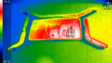 Максимальный нагрев — с обратной стороны печатной платы над GPU.