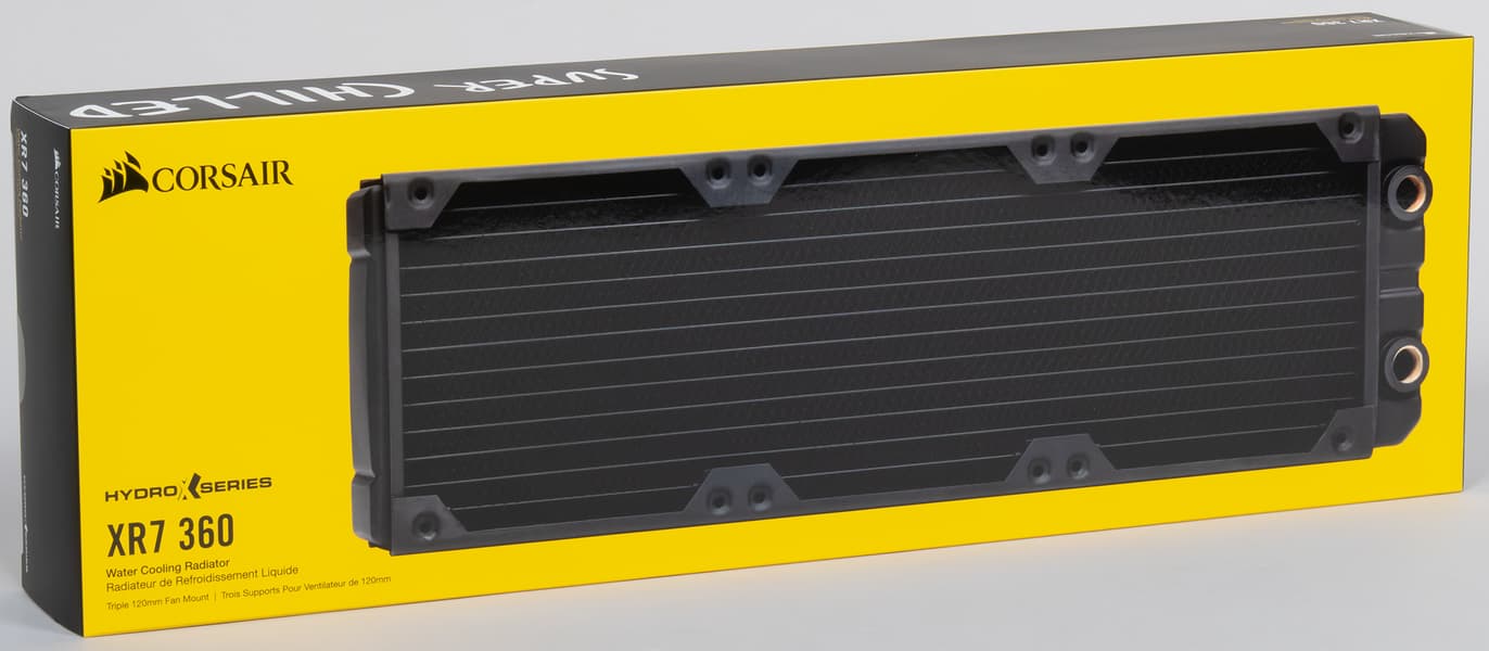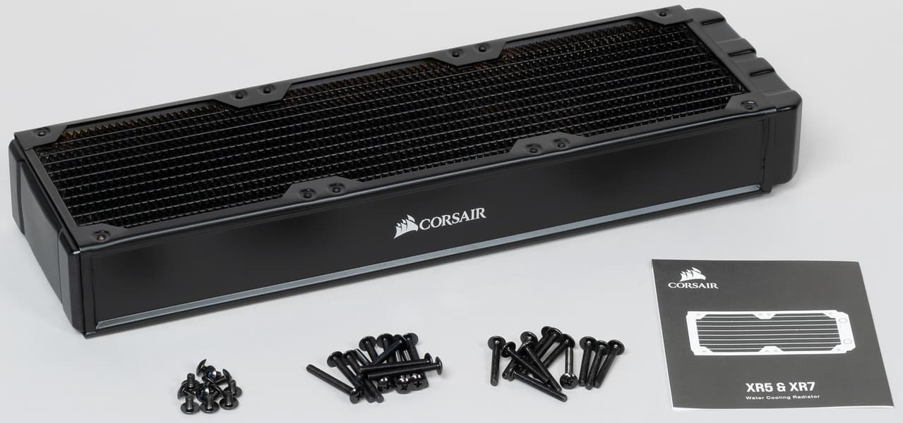 Радиатор Hydro X Series XR7 360 рассчитан на установку трех вентиляторов с рамками 120×120 мм. В комплект поставки входят винты трех типов: самые короткие, предназначенные для крепления радиатора непосредственно на перегородку/панель корпуса; винты подлиннее, которыми можно закреплять на радиаторе вентиляторы с обычной рамкой в 25 мм (можно через перегородку/панель корпуса); самые длинные винты, которым крепятся вентиляторы с выступающими резиновыми накладками.