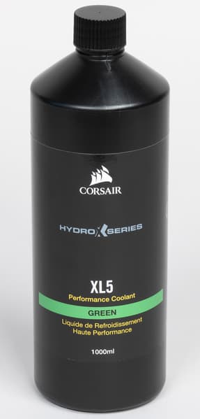 И, наконец, охлаждающая жидкость Hydro X Series XL8 Performance Coolant. Нам досталась зеленого цвета, что, как выяснилось, в случае многоцветной подсветки компонентов системы не очень хорошо, лучше бы смотрелась замутненная жидкость белого цвета.