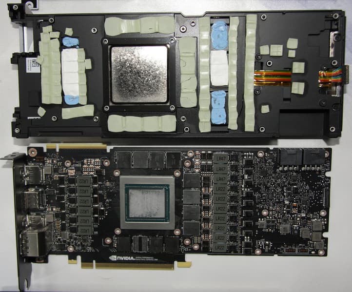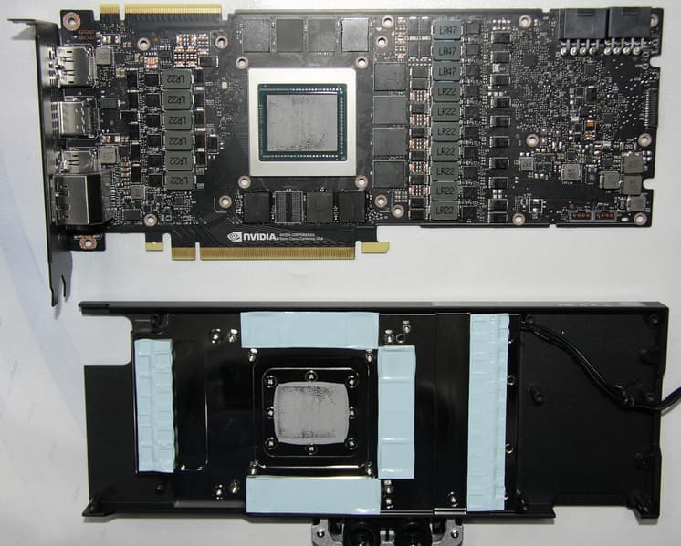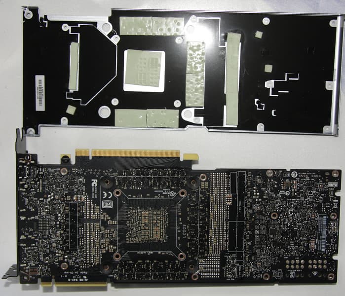Фотография после тестов показывает, где располагаются термоинтерфейсы водоблока относительно компонентов видеокарты: