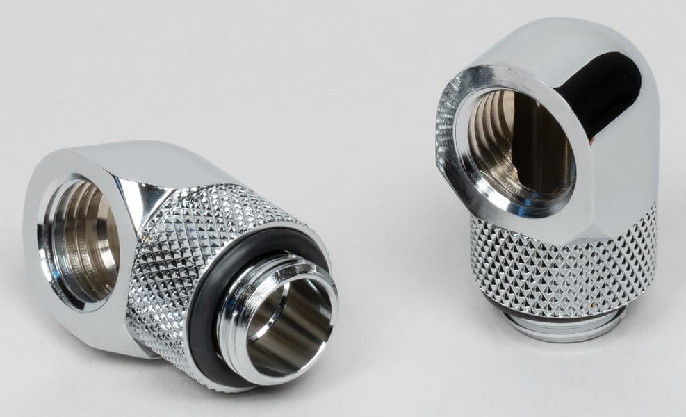 Угловой адаптер Hydro X Series 90° Rotary Adapter имеет с одного конца внутреннюю резьбу G1/4″, с другого — наружную.