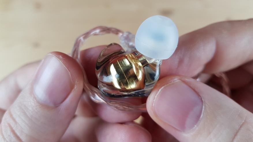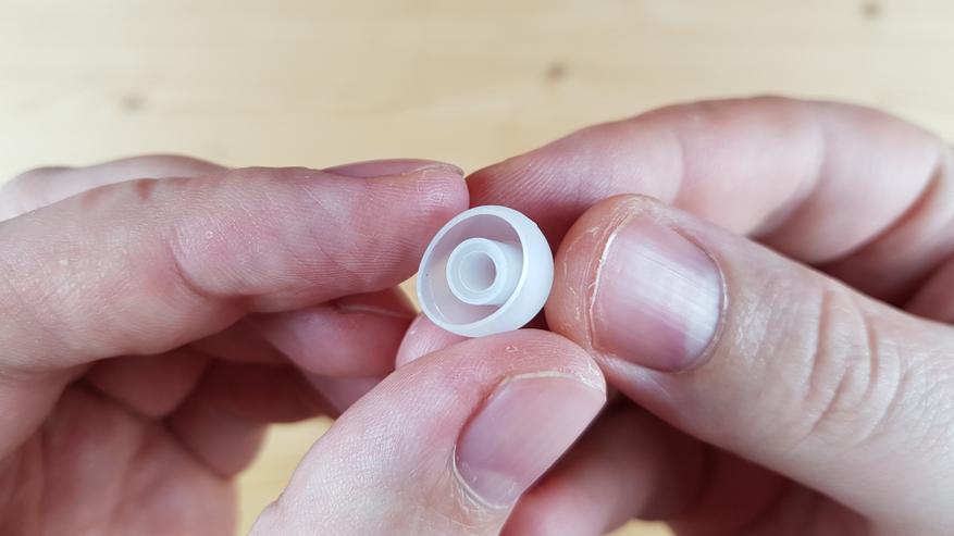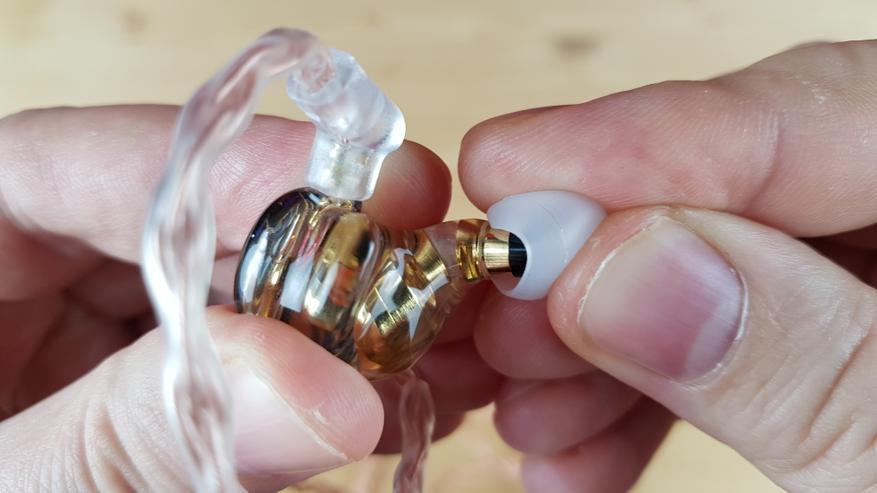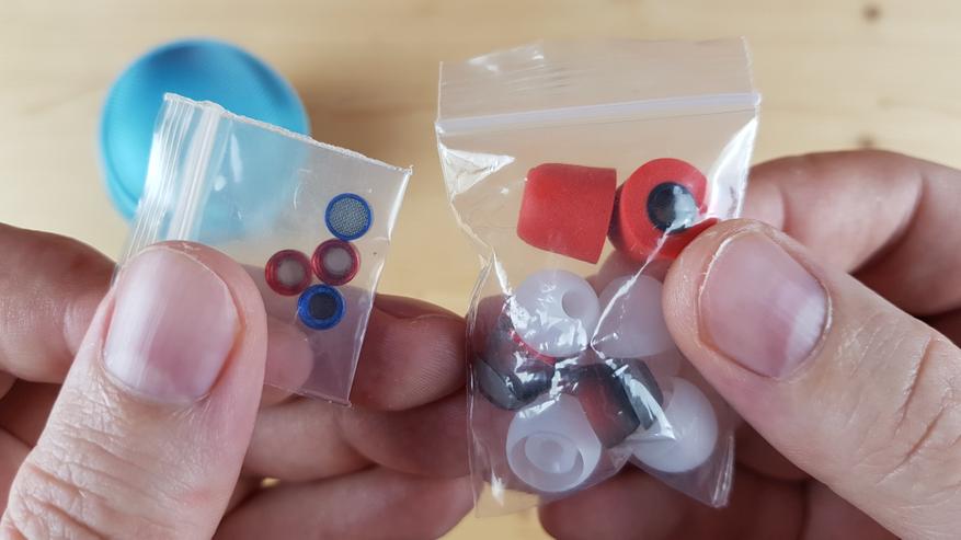 Набор достаточно богатый по затычкам, но мне не подошли никакие из них — надо или звуковод длиннее, либо ставить «ёлочку» известную с Али. У меня двойная «ёлочка» — поставил, лучше всего.