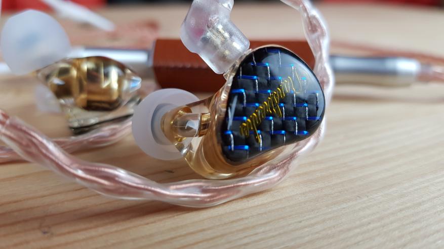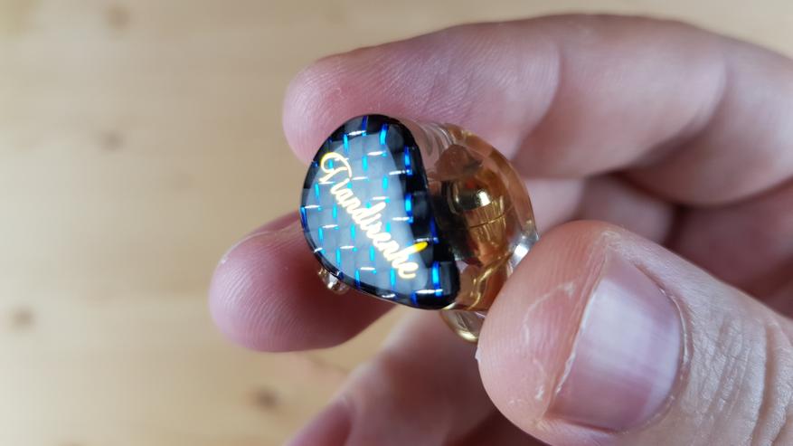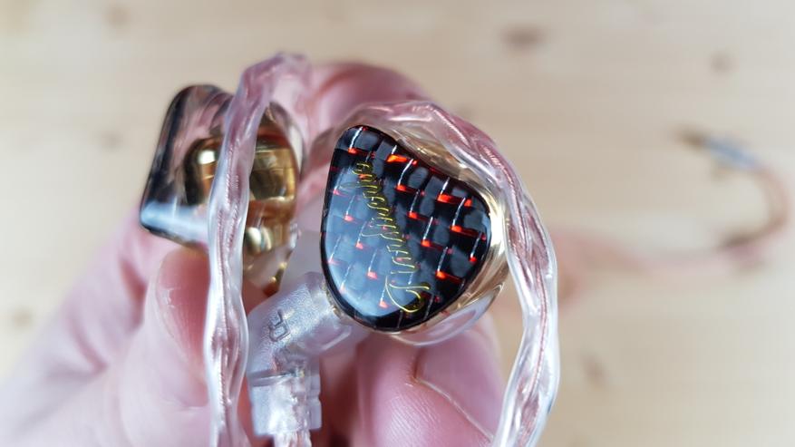 Зато сзади, на фейсплейтах, теперь красуются такие трехмерные красно-синие текстуры. Вернее на левом наушнике она синяя, а на правом — красная. В соответствии с классической уже маркировкой каналов. Отлично придумано. Кстати, подобный узор мы уже с вами видели на недавних флагманах KbEar Believe.