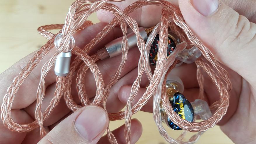 По уже заведенной традиции, я заказал самый полный из возможных комплектов. С набором пенок, елочек, стандартных силиконовых амбушюр, двумя дополнительными наборами фильтров и толстым медным кабелем без гарнитурного блока. Черный кабель нам теперь, увы, не предлагают. Зато можно взять наушники сразу с беспроводным блоком. Если, например, обычный кабель вам вообще ни к чему.