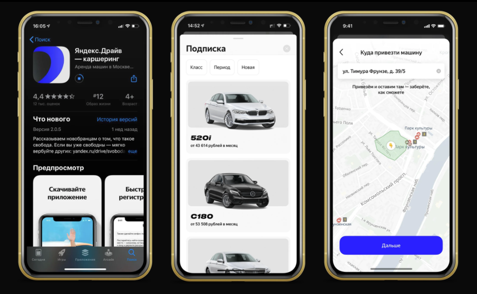 В приложении появилась возможность арендовать машину по подписке на срок от одного месяца до полутора лет. Эта функция позволяет не думать об оформлении, обслуживании и страховке — Драйв берёт это на себя.