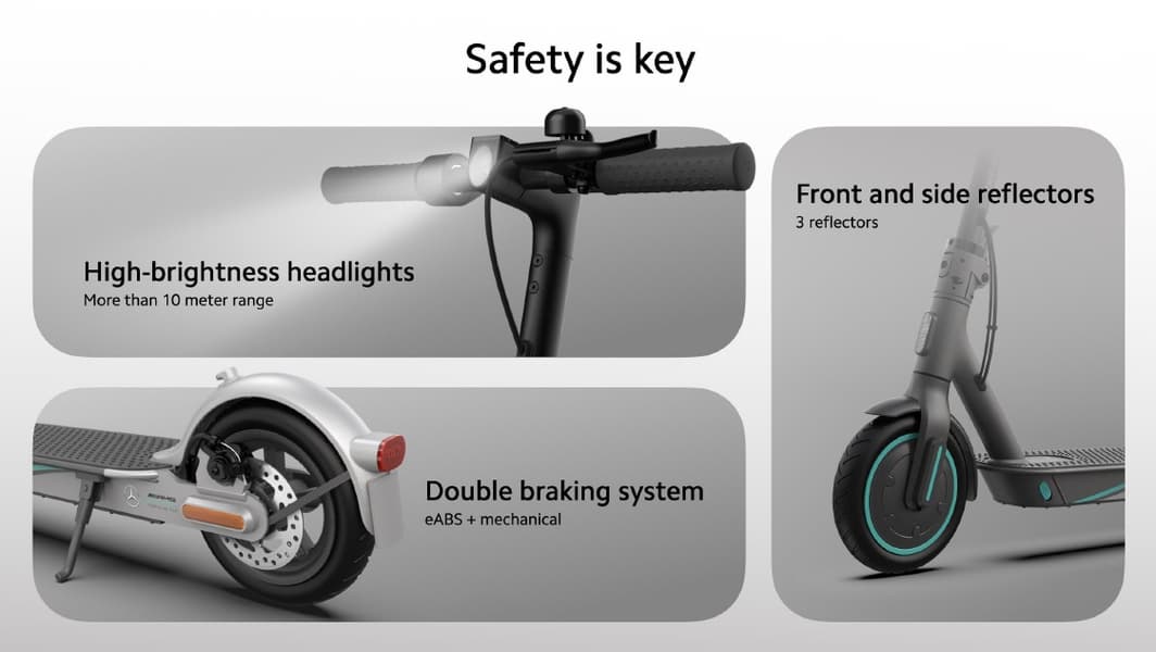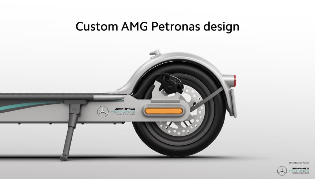 Судя по названию, это настоящий «Мерседес» в мире самокатов. Полностью он называется Xiaomi Mi Electric Scooter Pro 2 Mercedes-AMG Petronas F1 Team Edition. Самокат создан в сотрудничестве с командой Mercedes-Benz в гонках Formula 1.