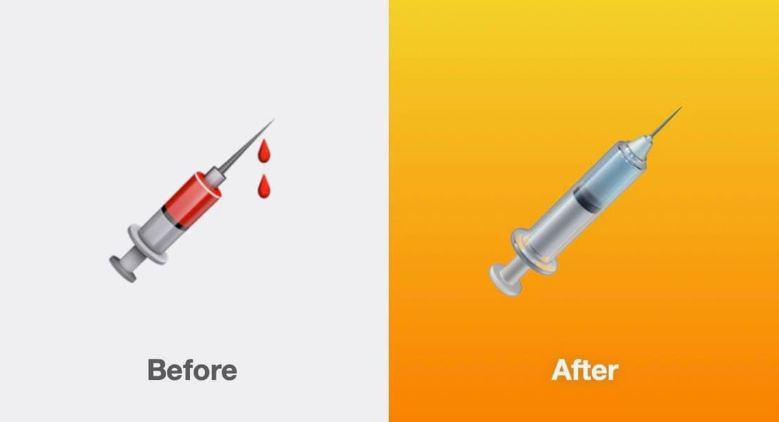 Кроме того, добавлены эмодзи полыхающего сердца и перевязанного сердца, выдыхающий человечек, человечек в облаках и человечек со спиральными глазами. Были изменены эмодзи шприца (теперь без крови, представляет вакцинацию) и наушников (теперь это не абстрактные наушники, а AirPods Max).