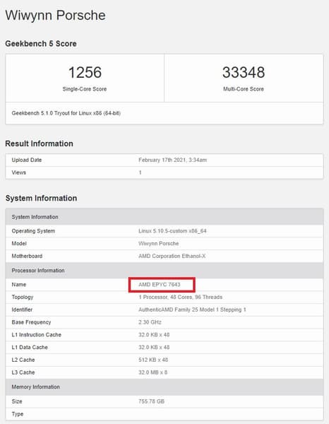 В бенчмарке Geekbench засветился процессор AMD Epyc 7643 — представитель пока ещё не представленной официально линейки серверных CPU Milan. И выступил он очень уверенно, на 33% опередив 64-ядерный Ryzen Threadripper 3990X в многопоточном тесте. И это при том, что у Epyc 7643 на 16 ядер меньше!