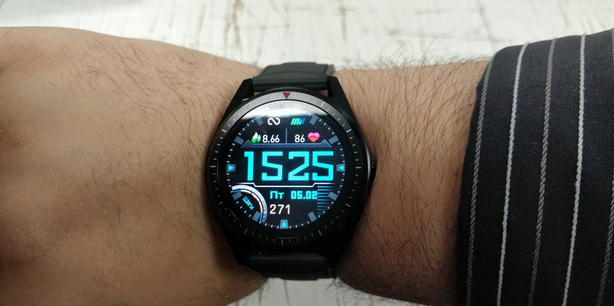 Устройство выполнено из металла, на лицевой стороне располагается весьма большой (по меркам смарт-часов) дисплей в 1,3 дюйма с AMOLED матрицей и с разрешением в 360 на 360 пикселей. Дисплей яркий, насыщенный, информация четко распознается даже на ярком солнце на улице, что весьма редко для часов подобного уровня.
