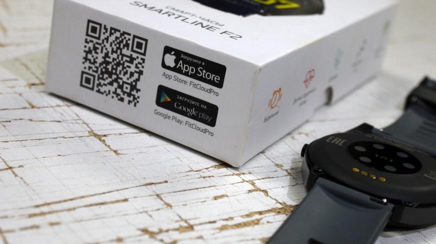 Продаются часы в маленькой картонной коробке белого цвета и в достаточно минималистичном дизайне, форм-фактор “Крышка-дно”. На лицевой стороне нанесено изображение самих часов, логотип бренда и наименование. На торцах расположены QR-код для скачивания приложения FitCloud Pro и основные фишки устройства с пиктограммами. На задней стороне расположены технические характеристики, серийный номер и информация о производителе. Все изображения и текст нанесены качественно и без видимых дефектов.