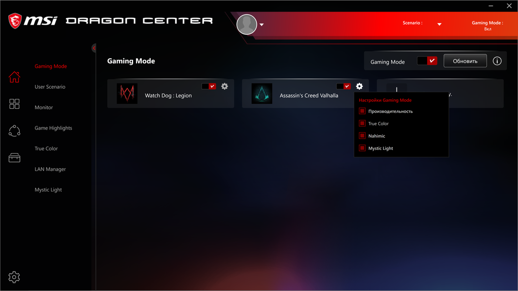 Управление работой карты обеспечивается с помощью хорошо известной фирменной утилиты MSI Dragon Center.
