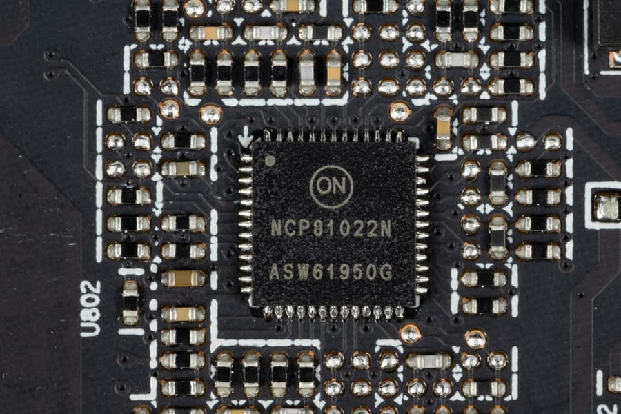 А ШИМ-контроллер NCP81022N (On Semiconductor), управляющий тремя фазами питания микросхем памяти, расположен на лицевой стороне печатной платы.