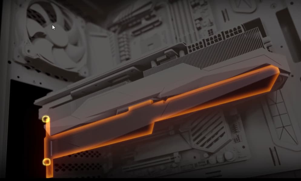 У карты подсвечиваются логотип компании и длинная полоса на верхнем торце, а таже шесть диагональных полос между вентиляторами. Подсветка больше предназначена тем, кто предпочитает стандартно горизонтально устанавливать карту в вертикально расположенную материнскую плату.