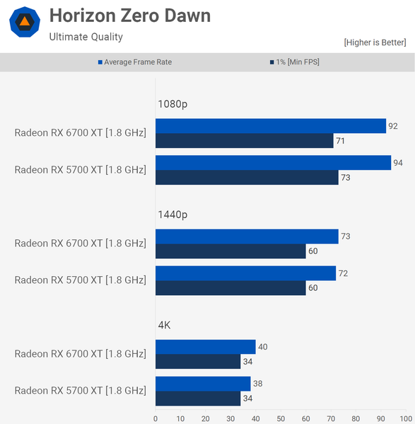 Тесты видеокарты Radeon RX 6700 XT уже опубликованы, и мы знаем, что она примерно на 30% быстрее предшественницы в зависимости от игры. Можно было бы списать всё на новую архитектуру, однако частоты GPU новой 3D-карты намного выше, чем у старой.