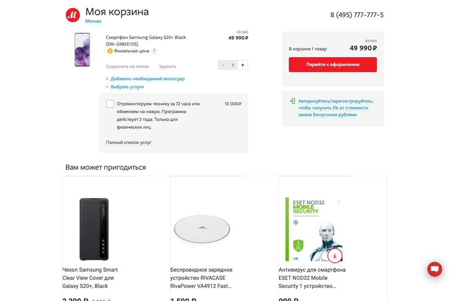 Отметим, что на сайте Samsung скидка на Galaxy S20+ обозначена, но стоит отметка, что товара уже нет в наличии. Расстраиваться не стоит — такие же цены на Galaxy S20+ (49 990 рублей) на момент написания новости действуют в «М.Видео» и «Связном».