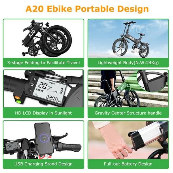 Популярный производитель электрических велосипедов ADO представила модель ADO A20, которая поставляется с усовершенствованным электродвигателем, а также аккумуляторной батареей ёмкостью 10,4 А•ч.