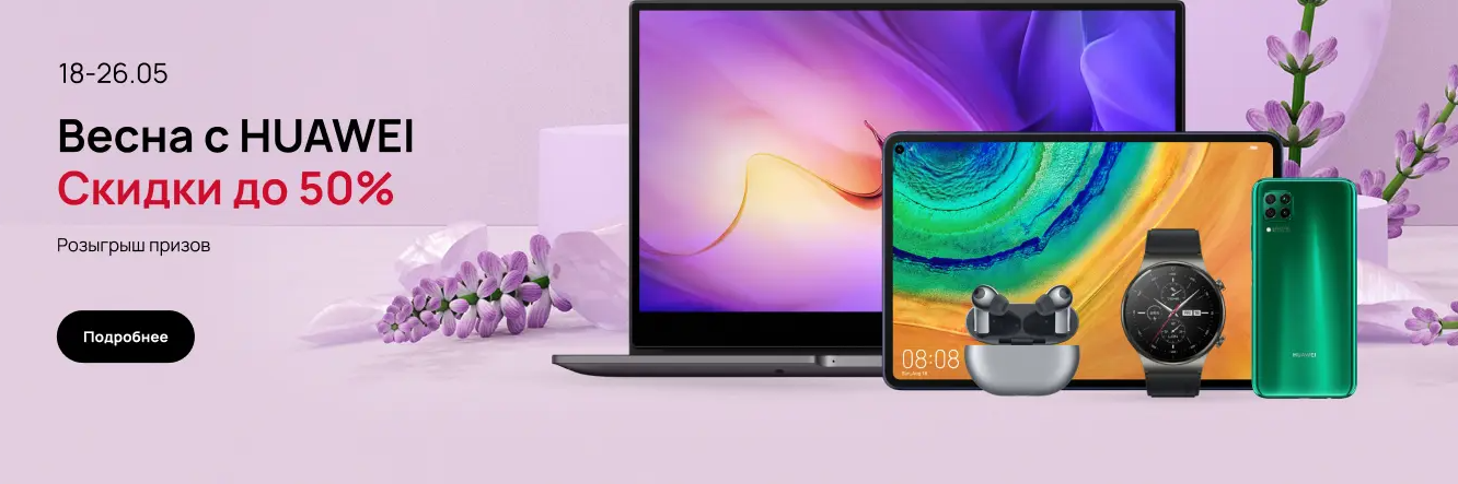 Компания Huawei запустила в официальном российском онлайн-магазине распродажу и анонсировала на будущее акцию «Встречай весну с Huawei», в рамках которой обещаны скидки до 50%.