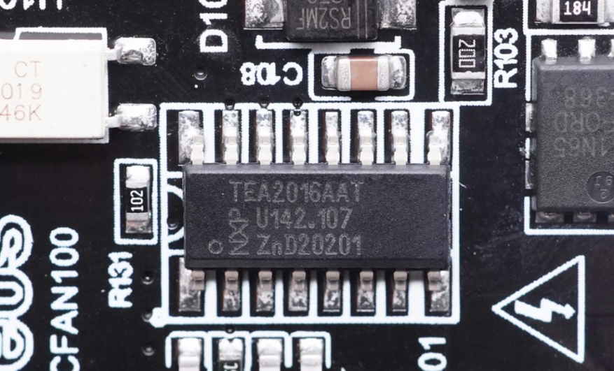 Основная микросхема PWM зарядного устройства — маркировка NXP TEA2016AAT. Микросхема имеет встроенный контроллер LLC и контроллер PFC, а также встроенный цифровой сигнальный процессор, что упрощает конструкцию и сокращает количество внешних компонентов. Процессор имеет несколько комплексных функций защиты.