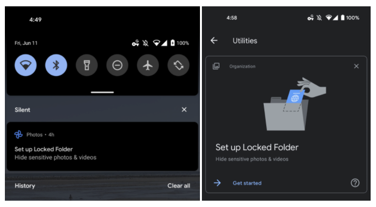 Владельцы Pixel получают новую функцию в виде обновления на серверной стороне, то есть вручную её активировать нельзя, только дождаться появления. После активации, на устройстве появляется уведомление «Настроить закрытую папку» от приложения Google Photos, по нажатию на которое можно ознакомиться с возможностями: