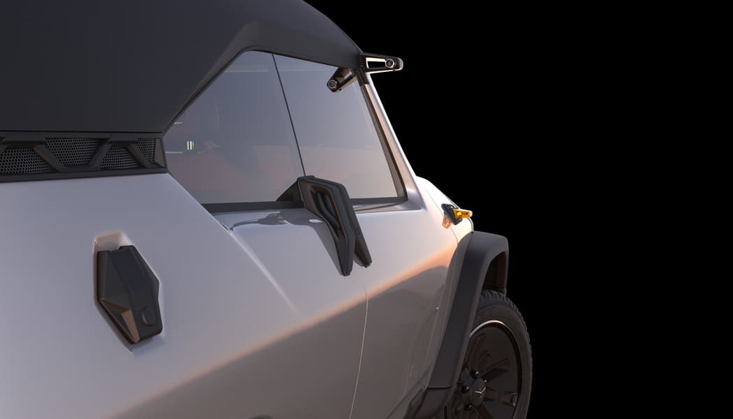 Автомобиль отличается высоким дорожным просветом, обилием неокрашенного пластика, оригинальной светодиодной оптикой, широкими колёсными арками. Чем-то он напоминает одновременно и Renault Duster, и Toyota FJ Cruiser. Интересно, что на крышке багажника красуется надпись 3.0 TDI. Видимо, автор не рассчитывает, что такое авто может получить электрическую силовую установку, а вместо этого предполагает, что будет использоваться традиционный ДВС, причём дизельный. Причём или заимствованный у Audi, или как минимум не уступающий ему по характеристикам.