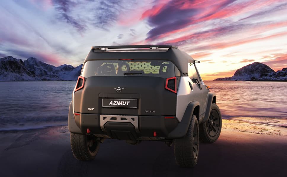 Дизайнер называет автомобиль Azimut. Концептуально это трёхдверный рамный внедорожник с короткой колесной базой для любителей активного отдыха. Концепт существует пока лишь в виде трёхмерной компьютерной модели, но дизайнер изначально учитывал технологические и производственные ограничения, которые неизбежны при создании реального образца.