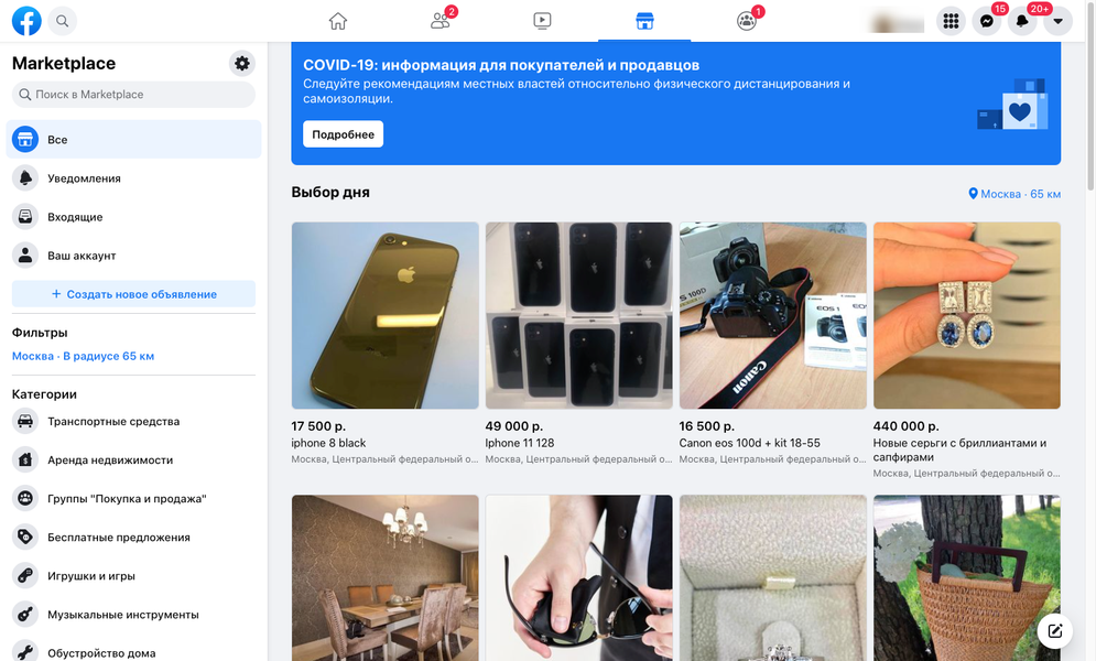 Команда социальной сети Facebook объявила о запуске в России платформы частных объявлений Marketplace. Изначально платформа для покупки и продажи товаров между пользователями появилась в соцсети в 2016 году.