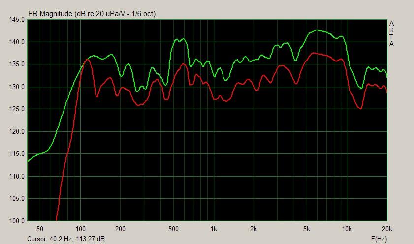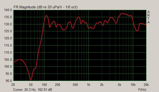Про стенд для измерений я уже писал (микрофон WM-61 в адаптивном цилиндрическом корпусе, звуковая карта ESI Juli@, ПО ARTA и LspCAD). Получаем итоговую АЧХ.