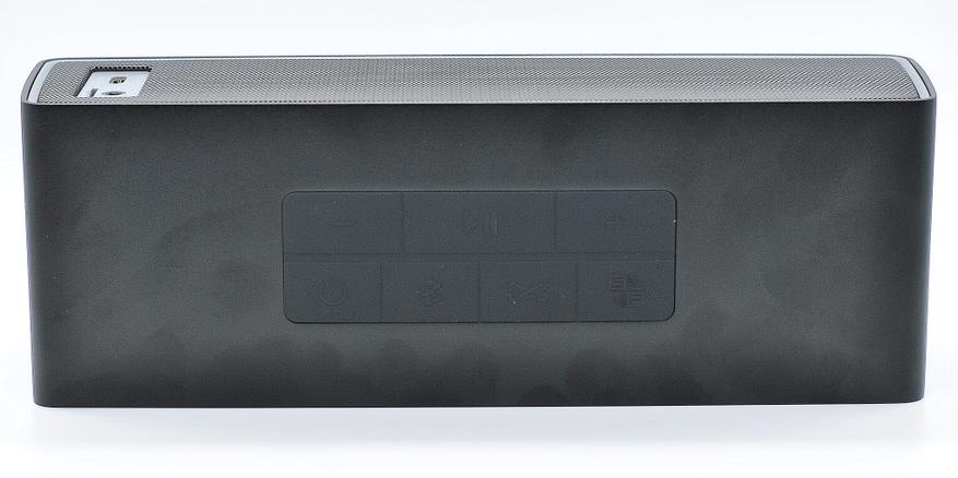 По управлению. Кнопки прорезиненные вынесены на верхнюю грань корпуса там же ряд светодиодов. Управление немного замороченное, лучше почитать инструкцию. Переключение режимов работы повесили на кнопку с лого Bluetooth, отдельной кнопкой активируется SoundPulse® и эквалайзер и отдельная кнопка на сопряжение нескольких колонок в одну звуковую систему (типичный режим TWS тут теперь называется TuneConn).