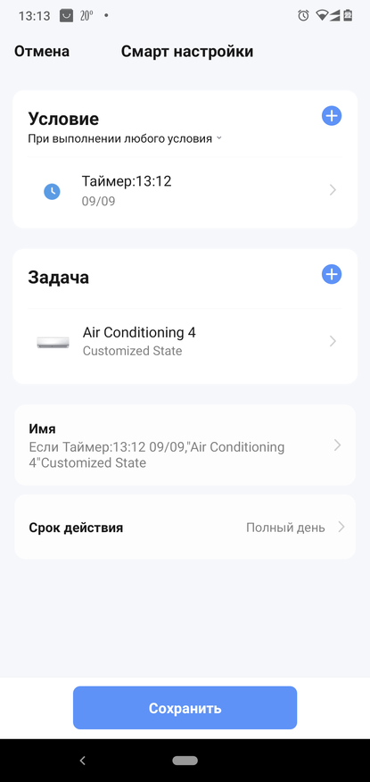 Получилась вот такая автоматизация, далее можно создать обратную автоматизацию на отключение кондиционера при достижении, допустим температуры в 21 градус по Цельсию. Но я больше предпочитаю все же включать такие устройства вручную, что бы не было лишних затрат на электрику, но тут уже решать каждому, как лучше и главное логичней и для кошелька, и для удобства сделать автоматизацию умного дома.
