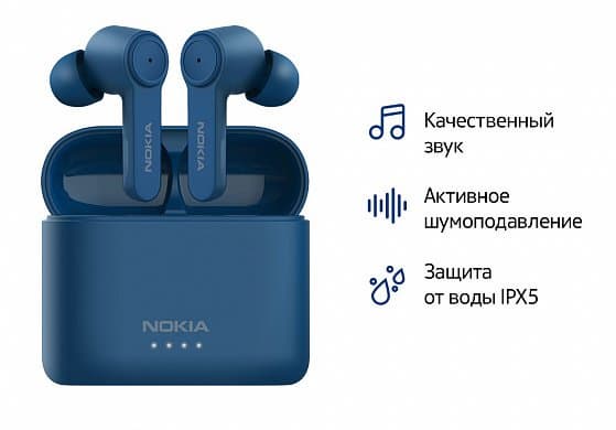 Nokia Noise Cancelling Earbuds BH-805 могут похвастаться такими особенностями, как активное шумоподавление (на 25 дБ), режим Ambient Mode, который активируется одним нажатием, защита от воды и пота (IPX5), сенсорное управление, поддержка голосового помощника Google Assistant (Google Ассистент), автономная работа до 5 часов (только наушники), дополнительные 25 часов с подзарядкой от футляра.
