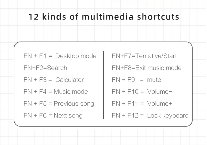 Также на клавишу FN и функциональные клавиши уже настроены различные быстрые команды. Поиск, калькулятор, запуска браузера и плеера, управление звуком и т.д. Все клавиши работают как задумано. Вот картинка, где указано какое сочетание клавиш за что отвечает: