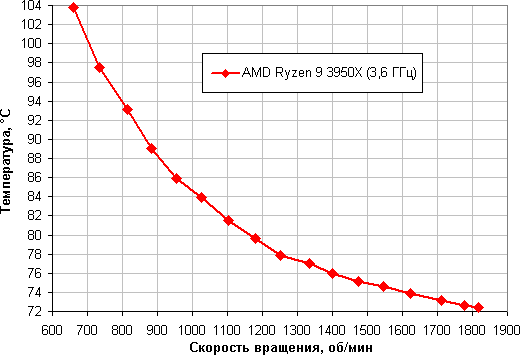 По факту в условиях теста этот процессор при 24 градусах окружающего воздуха уже перегревается (для этого CPU допустим нагрев до 95 градусов) при КЗ равном 25% (а это примерно 730 об/мин вентиляторов).