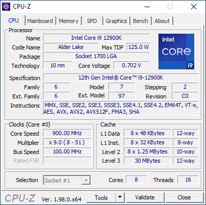 | Intel Core i9-12900K (8+0) | 0,99 |
