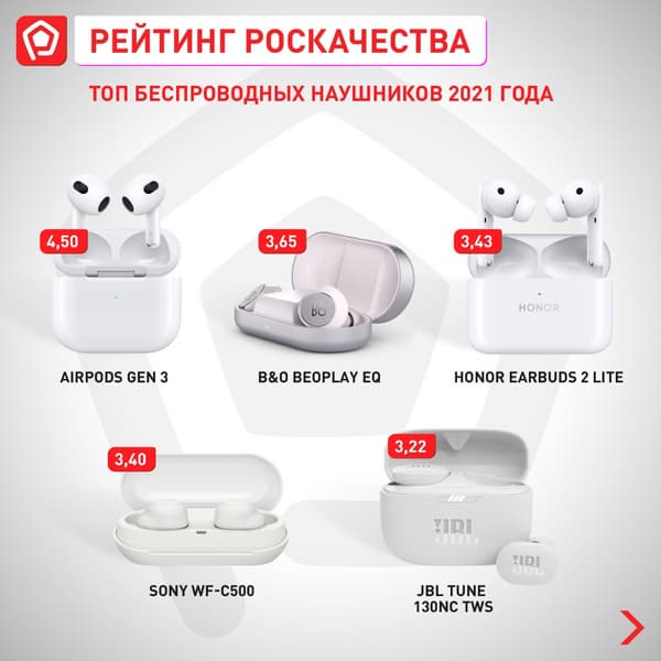 По результатам тестов эксперты Роскачества составили рейтинг лучших наушников по итогам 2021 года, а также подборку лучших недорогих моделей дешевле 10 000 рублей.