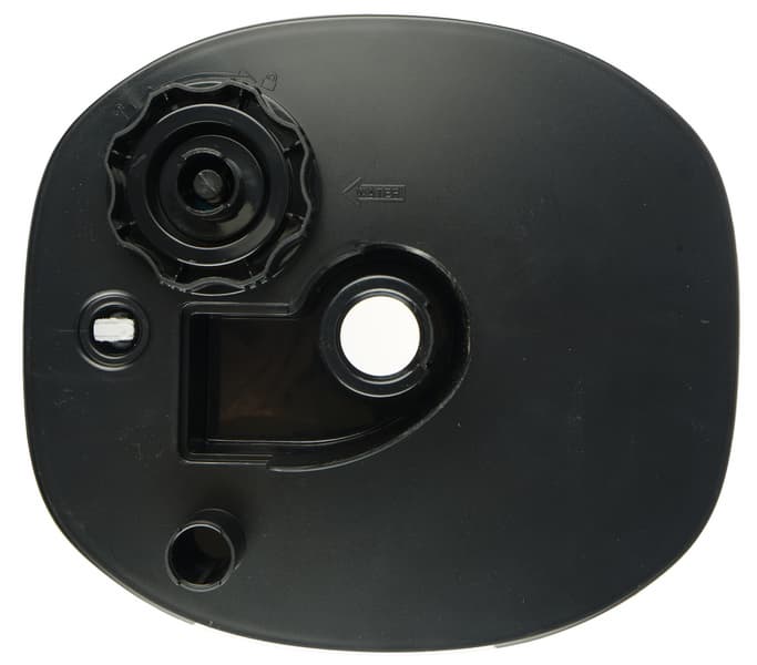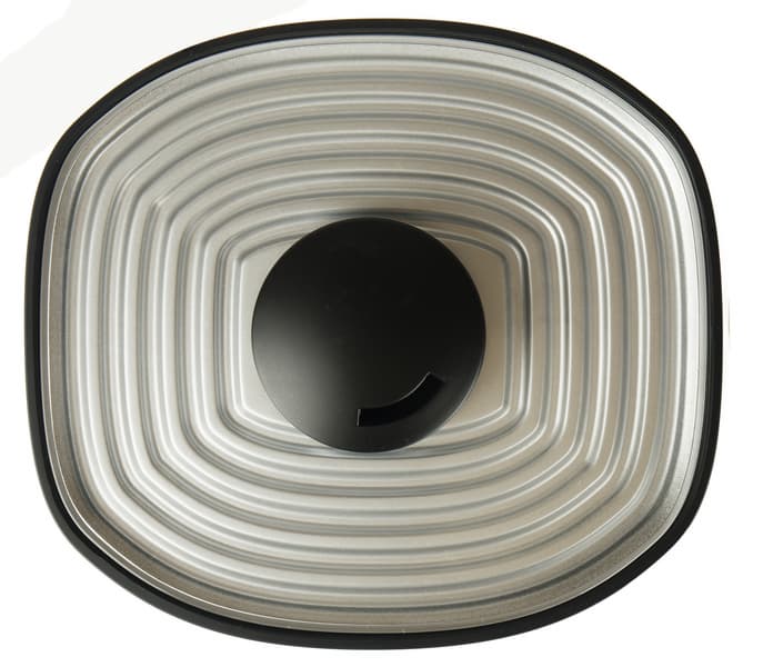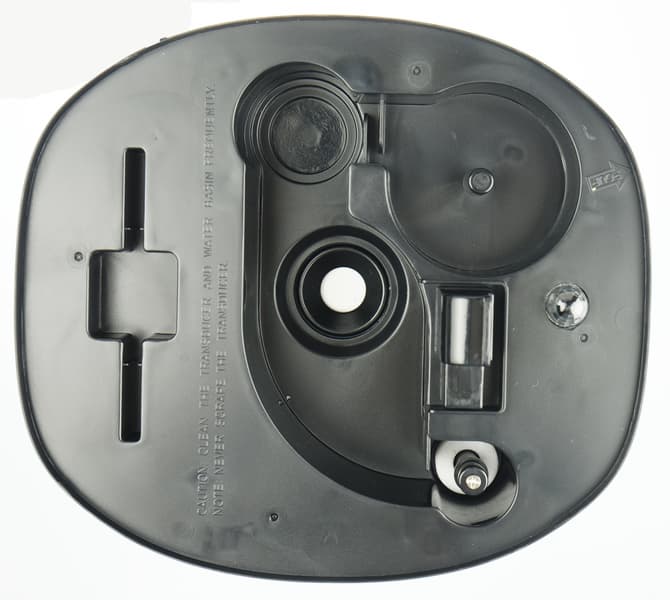 Крышка резервуара с вращающимся вокруг своей оси диффузором кажется ребристой, но поверх рифления есть гладкий слой прозрачного пластика.